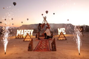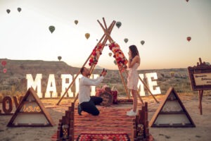 With our wide range of services, creative projects, professional team, unique ideas, and budget-friendly pricing options, we are a specialized and experienced Cappadocia marriage proposal organization company.