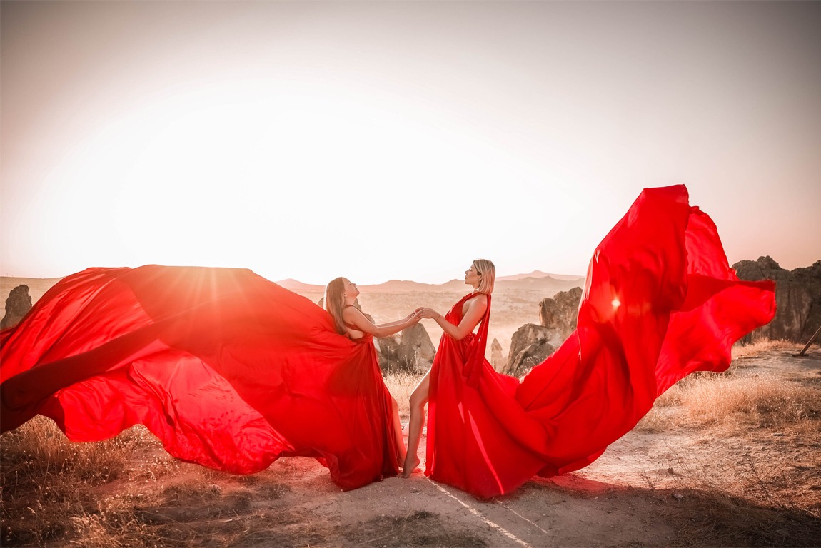 Planning a professional photo shoot in the enchanting atmosphere of Cappadocia, but need the perfect outfit to make your moments even more special? With our Dress Rental Service, you can easily rent your dream flying dress and create unforgettable frames. Our dresses, designed with elegant details, perfectly complement Cappadocia’s unique landscapes.