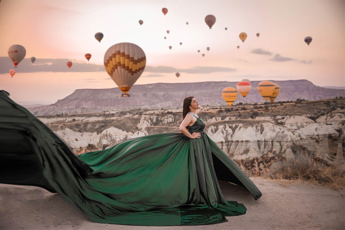 Elegant & Dreamlike Details: Complete the magic of Cappadocia with flowing dresses that create majestic photos.
