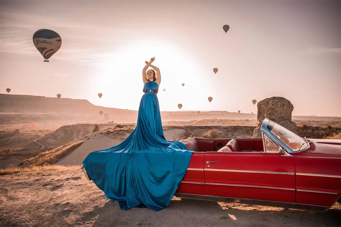 Get ready for a photo shoot experience where every detail is thoughtfully curated in the enchanting atmosphere of Cappadocia! The Full Experience Photo Shoot combines the nostalgic charm of classic cars, the elegance of flowing dresses, and the natural wonders of Cappadocia, offering you unforgettable memories captured with artistic precision.